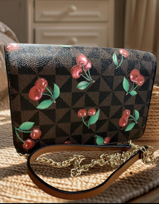 Sac à main marron Motif Cerises